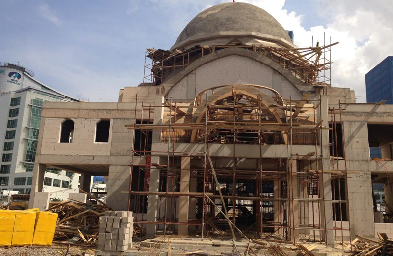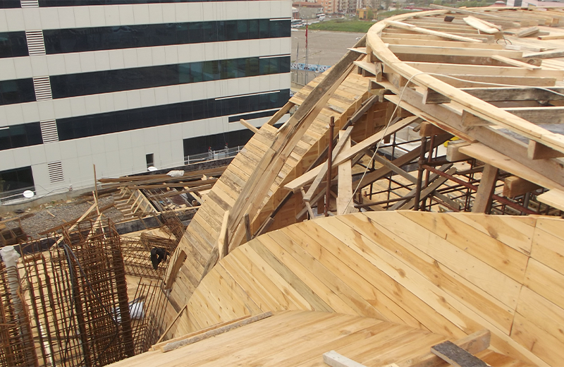 Construction of the mosque which is a project of architect Mahmut Sami Kirazoglu, began in 2013. 1350 people can worship inside at the same time. It is supported by four 'elephant foot' pillars and it has straight archs and a dome with the same style. We have handed over the rough construction of the mosque in four months.