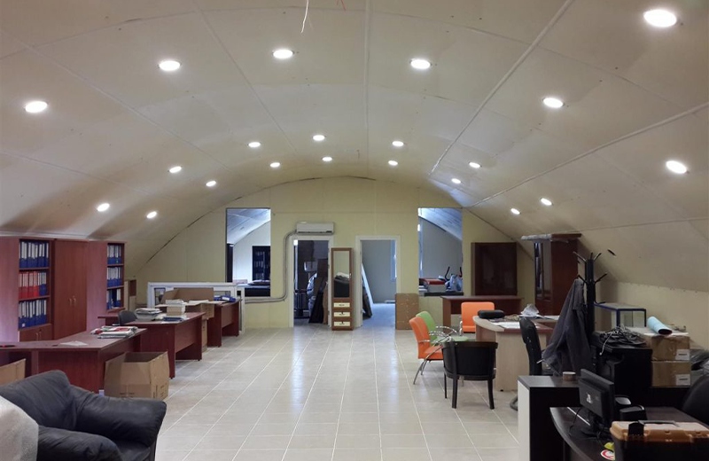 Also the vaulted steel roof and insulation of the factory is undertaken by our company.